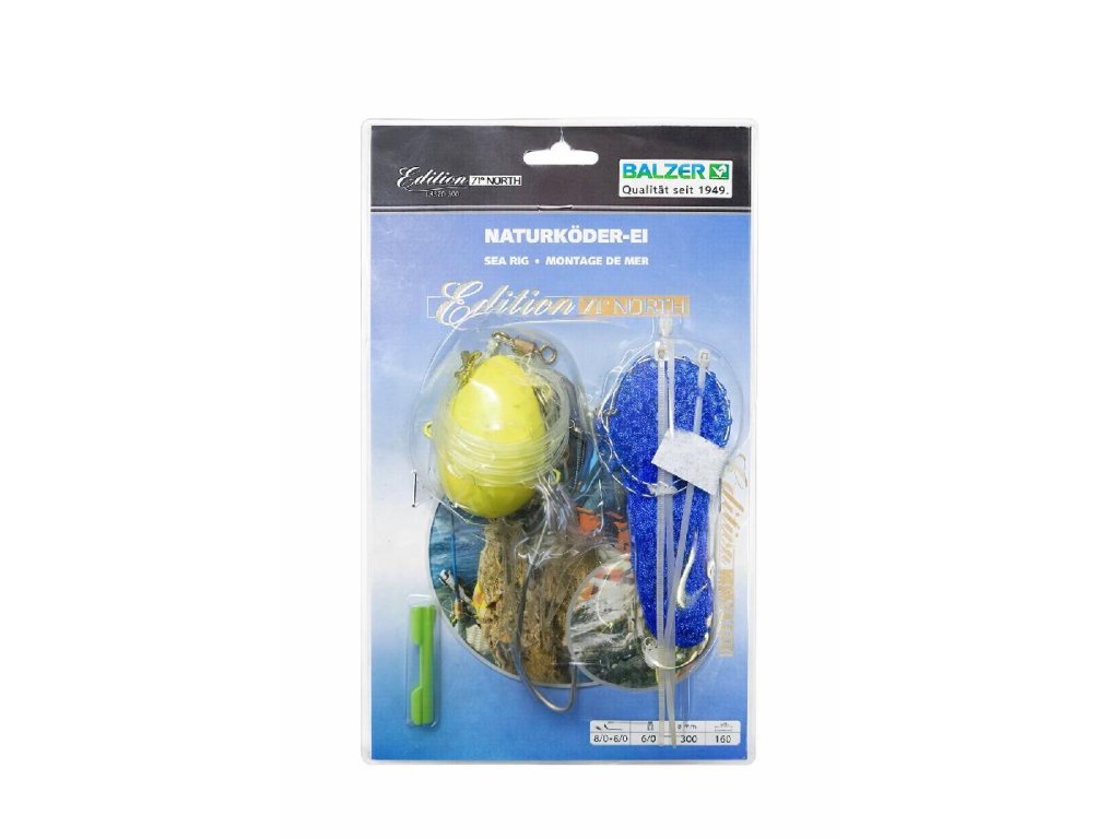Hotový mořský návazec určený pro lov s přírodní nástrahou. Naturköder-Ei funguje jako atraktor i nosič návnady – udržuje nástrahu u háčku, chrání ji před drobnými rybami a zvyšuje její viditelnost ve vodě. Ideální pro mořský rybolov ze břehu i z lodě.