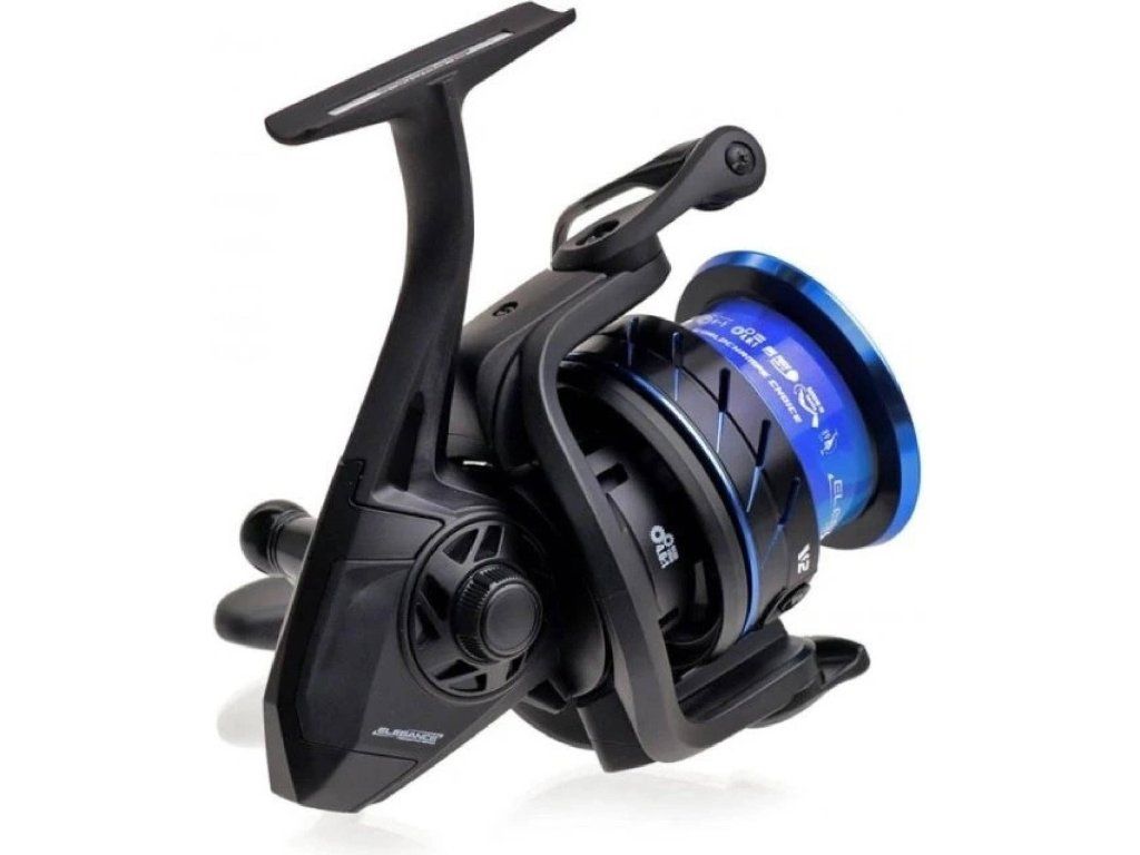 Naviják Elegance Feeder PRO V2 je vybaven 6+1 ložisky, má kovovou (hliníkovou) cívku se dvěma klipy v různých barvách, přesnou a citlivou přední brzdu a pevnou kovovou kličku s příjemnou, pohodlnou, pogumovanou rukojetí.