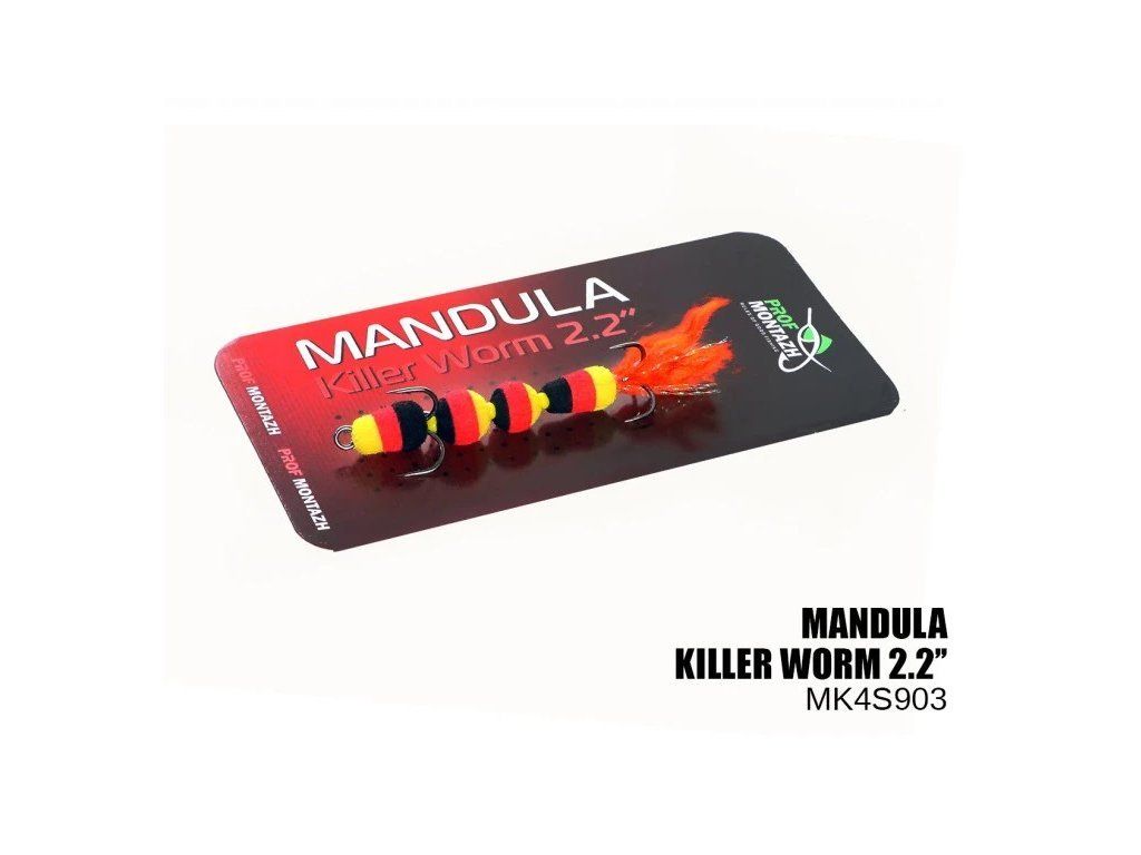 Mandula Killer Worm 4 segmenty 55mm (#903) – tělo se skládá ze 4 segmentů, každá část je oddělena korálky, celková délka mandulky je 55mm. V řadě Killer Worm se jedná o středně velkou mandulu, skvělou jak pro microjig, tak pro lehký lov. Za prvé, trofejí této mandule jsou okouni, ale candáti a štice se také nebrání hodovat na tak chutné napodobenině červa.