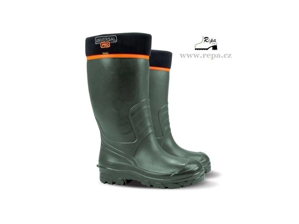 Pánské myslivecké zateplené holínky demar NEW UNIVERSAL PRO jsou ideální pro deštivé jarní a podzimní počasí. Barva bot je zelená. Holínky jsou vhodné pro myslivost, rybařinu a práci v lese. Holínky jsou velice pohodlné a extra lehké. Materiál je mrazuvzdorný kopolymer EVA, který funguje jako dobrý izolant. Podrážka holínek je proti klasickému UNIVERSALU ze speciálního protiskluzového materiálu. Vyjímatelné zateplení. Boty mají certifikát - označení CE. www.demar.cz