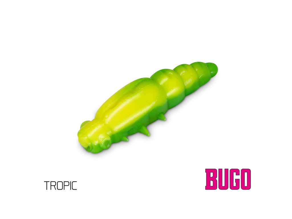 BUGO nabízí širokou škálu těch nejúčinnějších barevných provedení, která byla vybrána na základě dlouhodobých testů na různých vodních plochách. Navíc jsou tyto barvy UV aktivní a umožňují intenzivnější odraz slunečního záření pod vodou, díky čemuž se nástrahy stávají nepřehlédnutelnými i ve velkých hloubkách nebo za slabých světelných podmínek. Masivní tělo v kombinaci s plovoucím materiálem zpomalí propad nástrahy vodním sloupcem. Nástrahu BUGO je vhodné použít s mikro jigy nebo tungstenovou hlavičkou nastraženou na jigovém háčku.